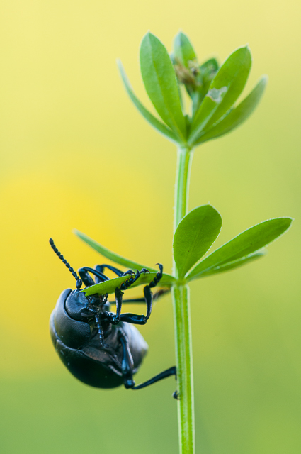 | Bläulichvioletter Tatzenkäfer (Timarcha goettingensis) / 225mm, f/5.6, 1/40s, ISO200, SVA, KFB |